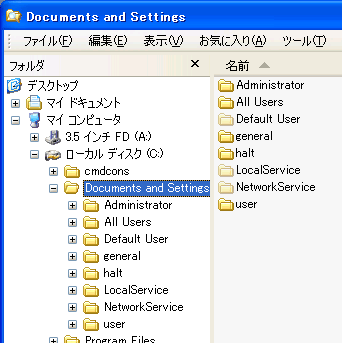 次に、WinXP のレジストリ構成と実体との関係を調べていく。