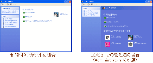 管理者グループにいるユーザでなく、Administrator ユーザで全てを行うという選択肢も確かにある。WinXP 導入時に他のユーザを作ってなければ Administrator しか居ないわけで、勿論それでも構わないし、権限的にも操作的にも特に変わりはないだろう。