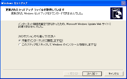 ウイザード画面が自動で進行していくので、待っていればよい。もし下図の窓が出て、選択を促すので在れば、スキップして続行する。