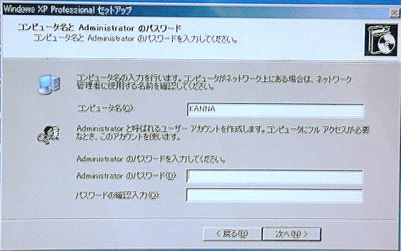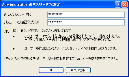 パスワード無しの Administrator のままだと、回復コンソールも GUI の WinXP も管理者としてログオンでき思うがままに実行できるので、セキュリティ上よろしくない(危険!)。パスワードを設定しておこう。