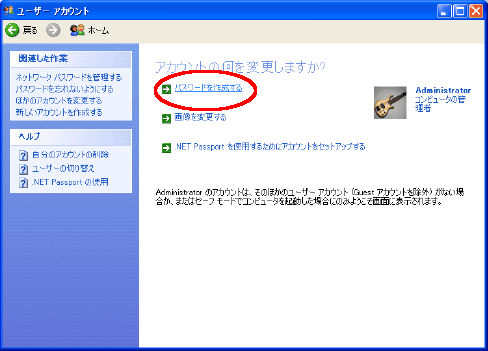 Administrator ユーザはビルトインアカウントだ。WinXP 導入時にパスワードの設定画面が現れるが、そこでパスワードを設定しなかったときは、現在使用中の WinXP の Administrator ユーザはパスワード無しということになる。