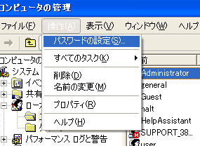 Administrator を選んだ状態で「操作」メニューの「パスワードの設定」を実行する。