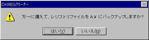 各機能の説明は取扱説明書に委ねるとして、ここでは「レジストリ再編成」機能を取り上げる。操作は殆ど Ver.4.0と変わらない。再起動を促す画面の前に、現在のレジストリのバックアップをとるかどうかの確認が入るようになった。