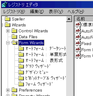しかる後に「Form Wizard」キーを regedit から削除し、完成したレジストリファイルを取り込んでやればよい。