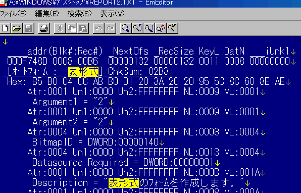 書き出したレジストリファイルには、幽霊キー及びそこに含まれるデータは書き出されない。再び書くが、アクセスできないからである。書き出されない分は補ってやればよい。補うべきデータはどこにあるか。Registr!p の詳細レポートで調べればよいのである。他のキーに倣って、不足している情報を書き足し、レジストリファイルを完成する。