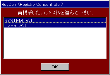 「再構成オプション」をクリックすると、再構成したいレジストリを選ぶことができる。しかしながら、毎回オプション画面を開いてレジストリを選択する必要はない。運用中の Win9x の環境によって最も適切なレジストリは、自動的に選ばれているからだ。