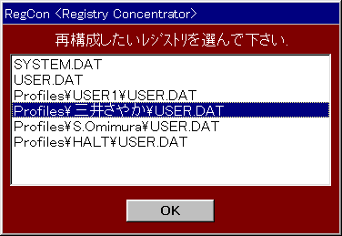 多くの個人ユーザは「シングルユーザモード」で使っていることと思う。その場合は windows フォルダの system.dat と user.dat が自動的に選ばれている。