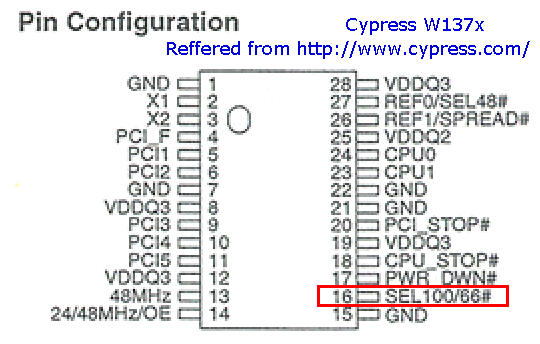 PLL は割と発見し安いところにあった。Cypress W137H だ。メーカーのWebでスペックを調べてみる。