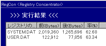 しかしWin95初期版では、素の状態で(IEは勿論導入されてない) system.datが軽く1MBを切っていたはずだ。まだまだ消せるところがレジストリに残されているに違いない。