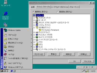 Win98 のインストールを始めて気付いたのは、まず、レガシーデバイスが無いせいか、レスポンスが極めてヨロシイこと。メイン機(Pen4)にも負けてないと言っても過言ではないほどの体感レスポンス、特にディスクアクセスは快適だった。今回換装したHDDは2年前に買った東芝の12GB(MK1214GAP)。正直元々のHDDより速いとは考えにくいからだ。あと、VGAでも液晶画面にいっぱいに拡大される点にもびっくりした。液晶画面の真ん中に通常の比率で表示されるであろうと思っていただけに。まだWin98がディスプレイドライバの検出すら行ってない時点なので、ハードウエア的に表示を拡大するようになっているのだろう。