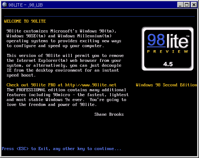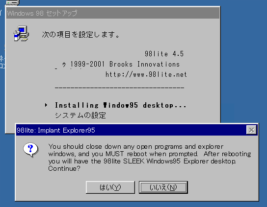 次に IE-Radiator の実施。ダウンロードしてきたら、zip を解凍してできた exe を実行する。実行後、 Win98 を再起動。