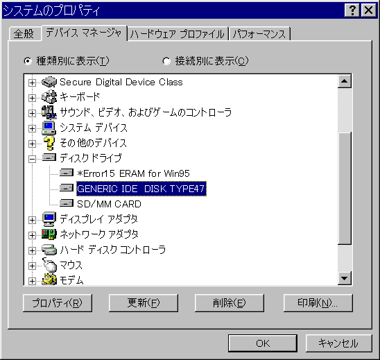 証拠になるか分からないが、CF実装後の師走。まずはシステムのプロパティから、CFディスクの見え方。